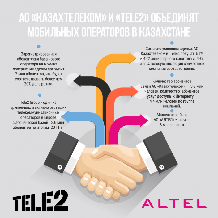 В результате данной сделки абонентам "АЛТЕЛ" и "Tele2 Казахстан", а также будущим пользователям будут доступны новые возможности за счет расширения покрытия сети, использования передовых технологий, таких как 4G/LTE и увеличения спектра оказываемых услуг.