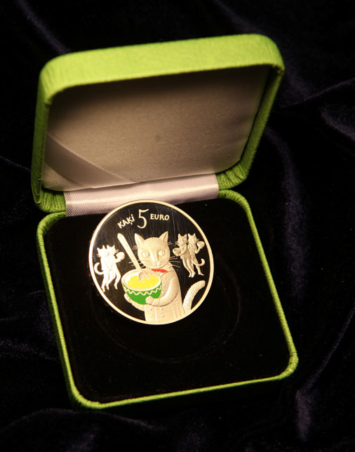 Как сообщили в банке, монета с котами создана по мотивам сказки "Пять котов" Альберта Кроненберга, известного латышского художника-графика, поэта и писателя. "Это первая коллекционная монета особой серии, посвященной самым любимым и ярким латышским сказкам", - пояснил пресс-секретарь Банка Латвии Янис Силакалнс.