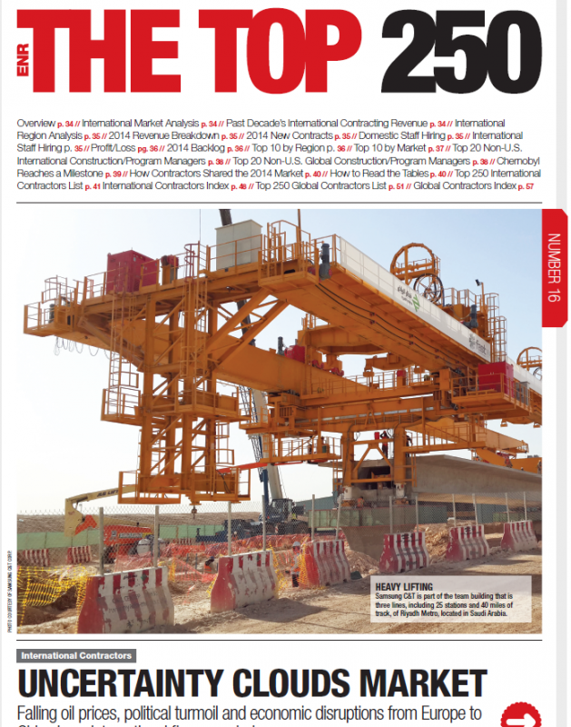 250 Top International Contractors ("250 крупнейших мировых строительных компаний") - рейтинг, ежегодно составляемый авторитетным международным журналом Engineering News Records, который анализирует деятельность инжиниринговых и строительных компаний во всем мире. ENG входит в группу McGraw-Hill, включающую в частности Standard & Poor's, McGraw-Hill Education, Platts energy information services и J. D. Power and Associates. Стоит отметить, что нижняя планка рейтинга ENR варьируется в пределах 800 миллионов долларов, а верхняя - свыше 90 миллиардов.