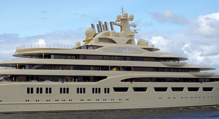 Валовая вместимость (гросс-тоннаж) 156-метровой яхты Dilbar (по имени матери предпринимателя - прим.) составила 15 917 тонн. По длине судно Усманова уступает яхте Azzam семьи шейха Халифы бен Заида Аль Нахайяна (180,6 метра), Eclipse Романа Абрамовича (162,5 метра) и Dubai принца Брунея (162 метра), однако по внутренней вместимости Dilbar на первом месте.