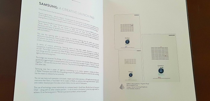Ежегодный каталог Brand Tribute отмечает достижения мировых брендов в плане креативных кампаний и публикует наиболее интересные работы. В 2017 году издание посвятило свои страницы бренду Samsung.