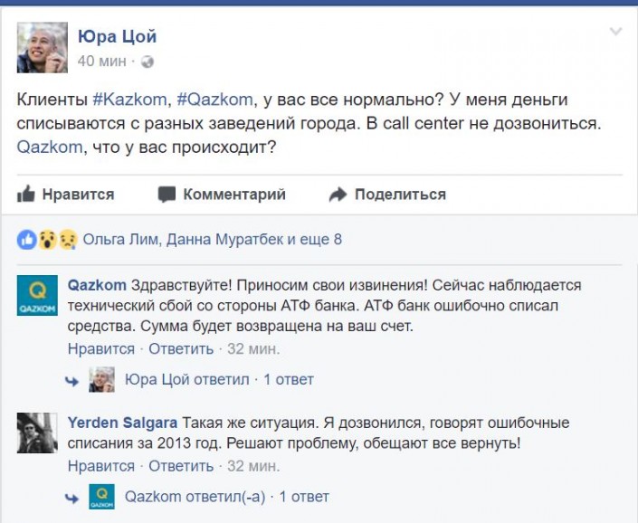 Как пояснили SMM-специалисты Qazkom в Facebook, произошел технический сбой.