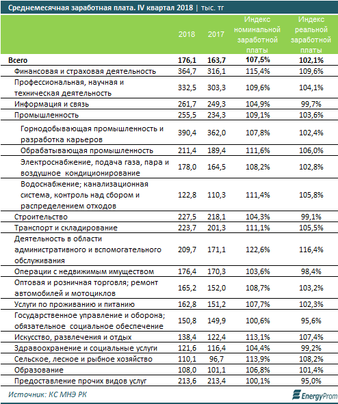 По итогам четвертого квартала 2018 года больше всех получали специалисты в сфере морского и прибрежного грузового транспорта и водного транспорта, а также в обязательном социальном страховании. Об этом сообщается в исследовании Energyprom.kz, передает Tengrinews.kz.