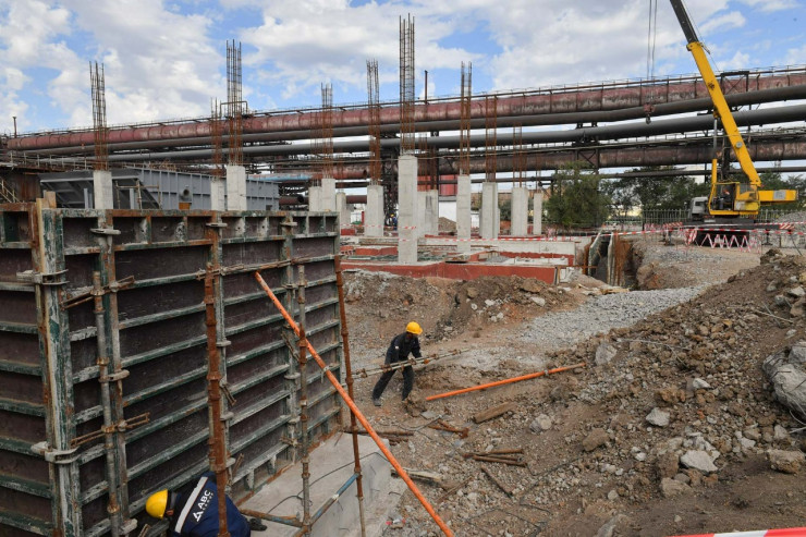 В настоящий момент проект находится в активной фазе строительства. Основное оборудование и объекты монтируются и устанавливаются. Сегодня на своих местах уже находятся гравийные фильтры, первичный газовый холодильник, собираются электрофильтры, монтируется фундамент под механизированные осветлители и ряд других вспомогательных объектов.