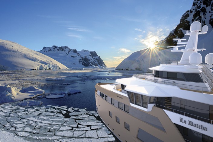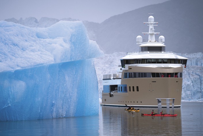 Яхта-ледокол SeaExplorer создана голландской верфью Damen в сотрудничестве с американской Eyos Expedition, организовывающей экспедиции в самые удаленные уголки планеты. Лодка относится к категории эксплореров - такие судна могут долго находиться в пути без дозаправки, а также преодолевать большую волну и лед.