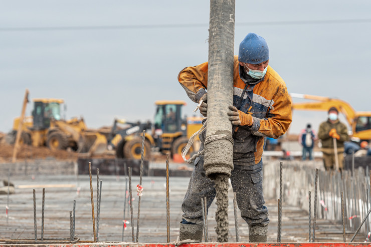Сейчас продолжается монтаж железобетонных модулей - их привозят со столичного завода ModeX, где изготавливают по немецкой технологии. Первоначально эти модули предназначались для жилого дома, но компания BI Group, которой принадлежит завод, решила отдать их на строительство медицинского учреждения. Также идет подготовка каркасов и сетей.