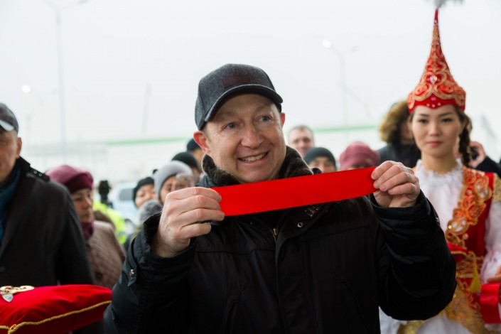 Председатель правления Александр Гарбер, перерезая красную ленточку, говорит: "Сегодня у нас торжественный и важный день, мы открываем самый большой в Казахстане магазин "Магнум". Здесь представлен самый широкий в стране ассортимент товаров, очень много продукции наших казахстанских производителей. Новый магазин во многом уникален. Но главное не меняется: "Магнум" предлагает покупателям самые выгодные цены и честное качество продуктов. Желаем вам выгодных покупок в "Магнуме" и праздничного настроения!"