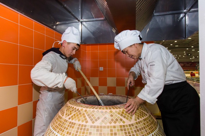 В Алматы в молле "Апорт", что по дороге в Каскелен и недалеко от рынка "Алтын Орда", открылся новый филиал сети "Магнум". Это самый большой "Магнум" в стране. Первое, что бросается в глаза, когда туда попадаешь, - тандырная печь, стоящая в хлебо-булочном отделе и наполняющая торговый зал запахом свежего хлеба. Печь электрическая, но лепешки в ней получаются как в настоящем тандыре - мягкие, румяные. Очарования диковинному для современного торгового зала процессу придает то, что выпечку достают с помощью традиционного инвентаря тандырщиков - ковша и лопатки.