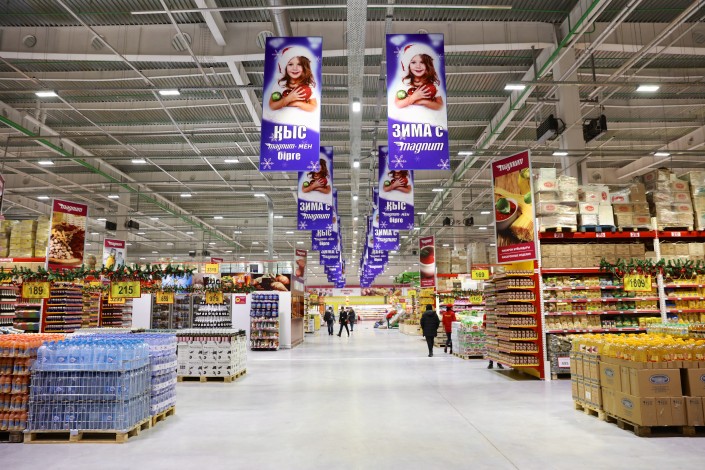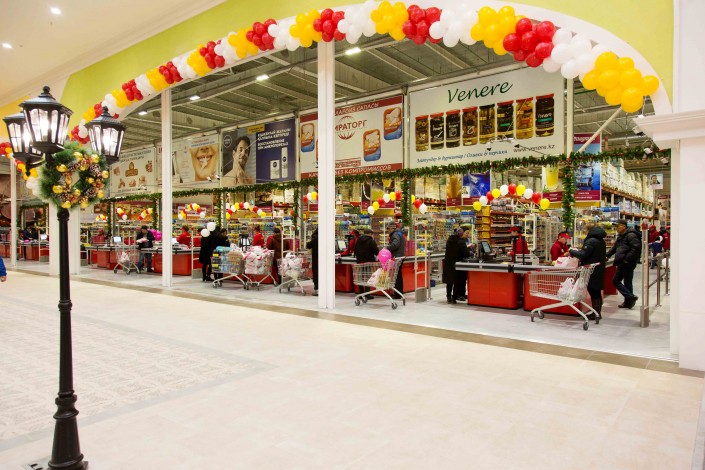 "Мы поиграли с пространством, чтобы было больше места, чтобы покупатели не толкались тележками. Площадь торгового зала здесь 7 300 квадратных метров", - широко разводит руками исполнительный директор Саид Гасанов.