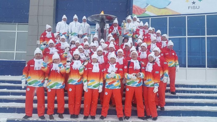Участники эстафеты огня 28-й Всемирной зимней Универсиады-2017: