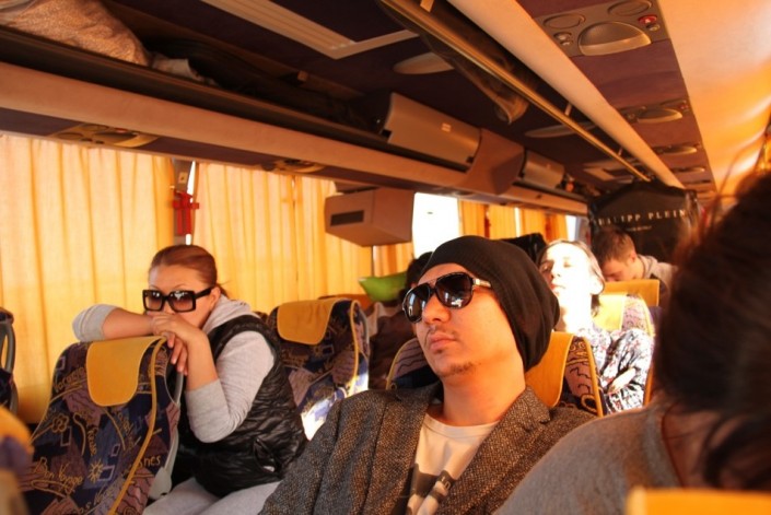 "Дорога вдохновляет меня. Горы, озера, реки, моря, степи нашей бескрайней родины дают мощный импульс для сочинения песен, в дороге есть много времени для того, чтобы подумать. Я с детства люблю путешествовать. Долгие поездки никогда не тяготили меня, потому что это время можно также использовать продуктивно: с командой мы становимся еще ближе, песни пишутся, креативность растет. Я вижу только плюсы в использовании гастрольного автобуса", - сказал Алишер, отвечая на вопрос "почему именно автобус?".