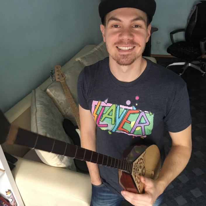 Музыкант также отметил, что другим его хобби является создание социальных роликов. "В них я стараюсь выразить то, что меня волнует: проблемы экологии, города, коррупции. Например, я делал ролик, состоящий из старых фотографий Алматы. Также я создал ролик, про ожившие картины казахских художников", - сказал он. Кроме того, парень сыграл на гитаре гимн Казахстана.