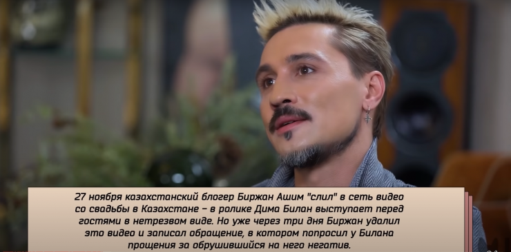 27 ноября блогер Биржан Ашим опубликовал в своих Instagram Stories видео выступающего в нетрезвом виде Билана. Он назвал музыканта "обдолбанным" и заявил, что Билан был пьян. Артист с трудом разговаривал с публикой и не попадал в такт мелодии.