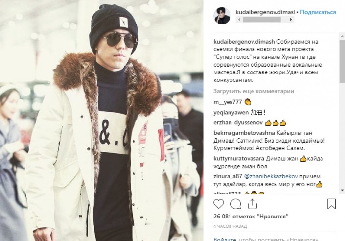 "Собираемся на съемки финала нового мегапроекта "Суперголос" на канале Хунан ТВ, где соревнуются образованные вокальные мастера. Я в составе жюри. Удачи всем конкурсантам", - написал исполнитель.