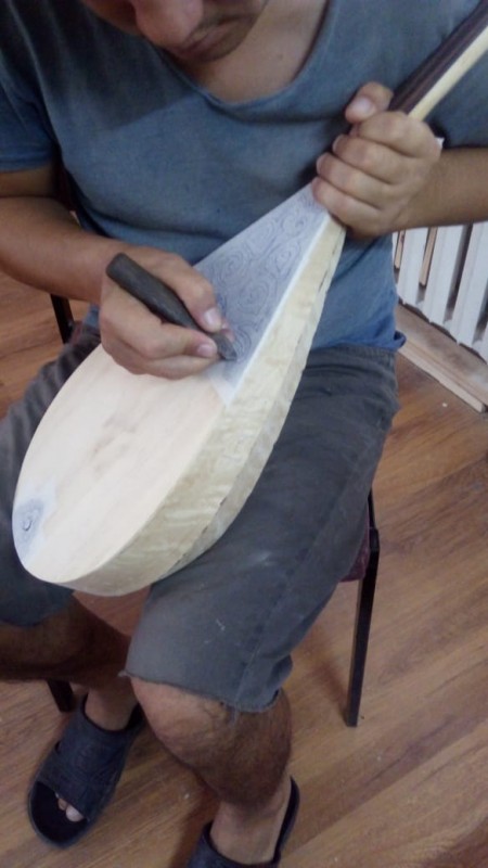 "Домбыраны жасау үшін бірінші кезекте материал таңдау қажет. Материал міндетті түрде біраз жыл кепкен болуы қажет. Мысалы, кемінде 60-70 жыл кебуі керек. Сол кезде ғана домбыра өте жақсы дыбыс береді. Сондай-ақ, домбыраның шанағы да, мойны да кепкен ағаштан жасалады. Оларды арнайы әдістермен де кептіруге болады. Бірақ оны ең аз дегенде 5-6 жыл уақыт кептіру керек. Ал ылғалдылығы ең кем дегенде 8-12 пайыздан аспауы тиіс. Сол кезде ғана ағаш өз функциясын атқарады, яғни, майысып кетпей, бастапқы қалпын сақтап, жақсы қасиеттерін бере алады", - дейді ол.