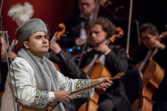 Вечер открылся исполнением знаменитого произведения Еркегали Рахмадиева "Праздничная", задавшего тон концерту. Ярким продолжением стало сочинение Толегена Мухамеджанова "Родная земля", прозвучавшее в исполнении Симфонического оркестра "Астана Опера", Руслана Баймурзина (домбра) и Саджаны Мурзалиевой (кобыз). Российская публика познакомилась и по достоинству оценила Адажио из нового балета "Воздушное кочевье" Актоты Раимкуловой. Вниманию слушателей также были представлены Концерт для скрипки с оркестром, I часть Газизы Жубановой в интерпретации талантливой скрипачки, лауреата X Международного юношеского конкурса имени П. Чайковского Акбике Алги. На бис была исполнена "Воля к жизни" Рахата-Би Абдысагина, сольную партию представил Лев Винокур. Музыканты посвятили исполнение этого произведения памяти Д. Хворостовского. Под шквал аплодисментов первое отделение завершилось "Қыз Қуу" Тлеса Кажгалиева.