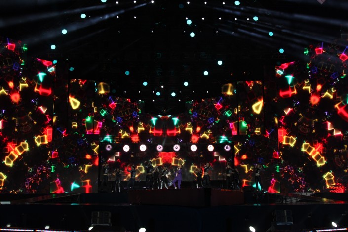 Как рассказала режиссер-постановщик концертной программы Назгуль Карабалина, специально для концерта сцену выполнили в форме звезды и сделали мобильной: передний конусный язычок принимает различные формы. Есть выдвигающийся подиум, раздвижные экраны, крутящаяся сцена и многое другое.