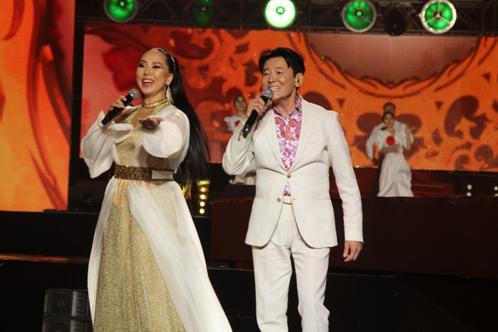 Каракат Абильдина и Кадырали Болманов исполнили песню о любви.