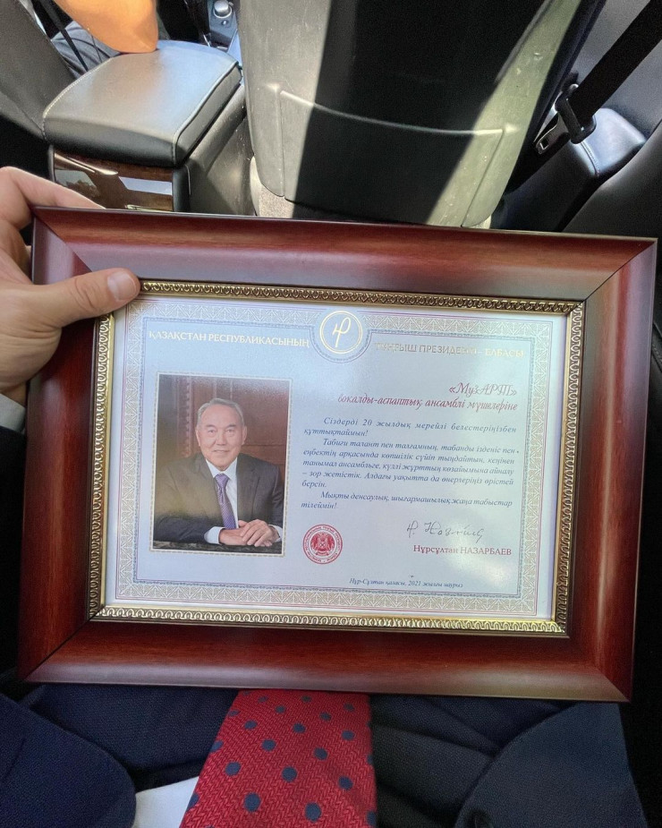 "МузАРТ" тобының солисі Сәкен Майғазиев Instagram-дағы парақшасында қуанышын бөлісіп, Елбасының құттықтау хатының суретін жүктеп қойды.