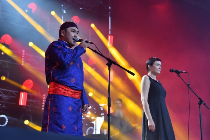 Отлично вписывается в такой стиль и саксофон, игра которого погрузила зрителей в особую атмосферу. Совместно с Инной Желанной выступил и известный мастер горлового пения Радик Тюлюш. Дуэт двух мастеров вокала покорил зрителей своей необычностью, а потом зажег своеобразным драйвом.