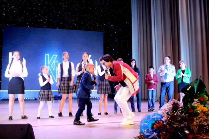 Воспользовавшись удобным моментом, 10-летний Аркаша подарил певцу тумар - оберег на удачу. В ответ Кайрат Нуртас преподнес мальчишке свой подарок - костюм из личного гардероба с логотипом KN. Ну а затем наступил звездный час мальчика: вместе со своим кумиром на одной сцене он спел проникновенную песню на казахском языке.