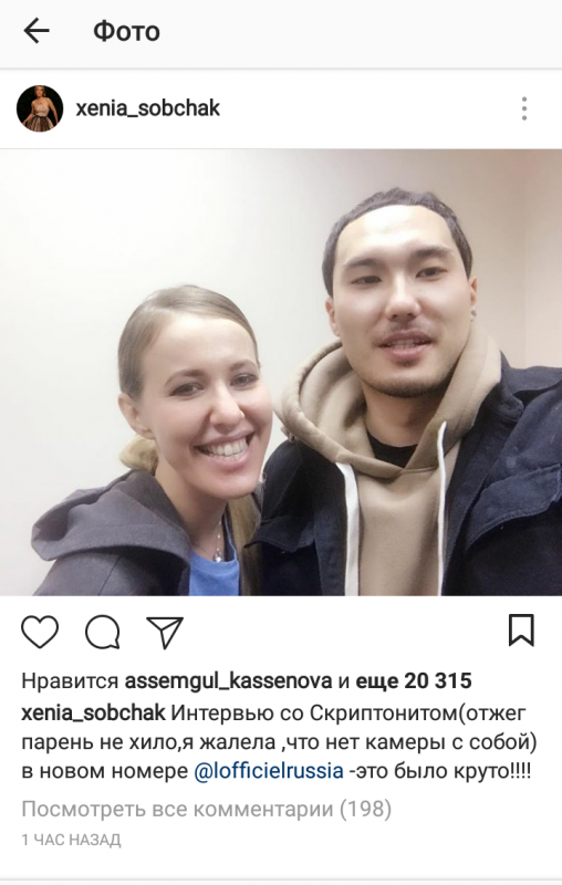 Отметим, что ранее Собчак анонсировала в своем Instagram интервью со Скриптонитом. "Не хило парень отжег, я жалела, что не взяла камеры с собой. Это было круто", - подписала тогда совместное фото телеведущая.