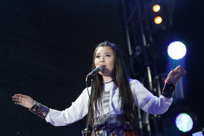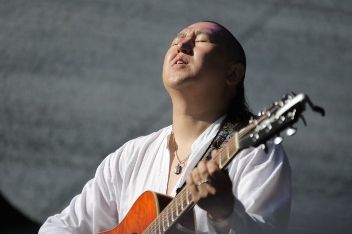 19.50 Казахстанский Dj Nariman Issenov вышел на сцену вместе с якутским трио "Айархаан".