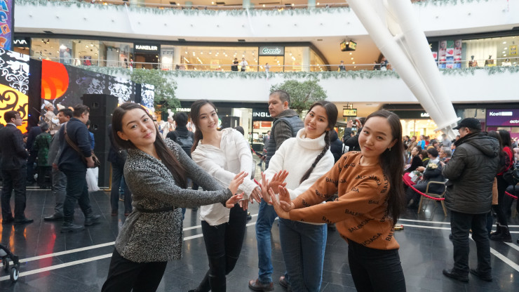 Коллег пришли поддержать танцовщицы из ансамбля народного танца "Шалкыма"