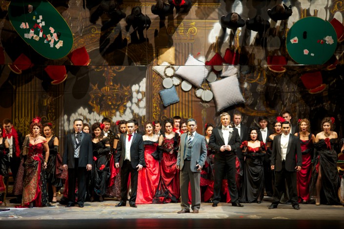 Опера, написанная по мотивам романа Александра Дюма-сына "Дама с камелиями", впервые была представлена 6 марта 1853 года в театре "Ла Фениче". Автором либретто стал Франческо Мария Пьяве. Отметим, что премьера оперы "Травиата зеркал" в постановке Хеннинга Брокхауза в "Астана Опера" состоялась ровно год назад.