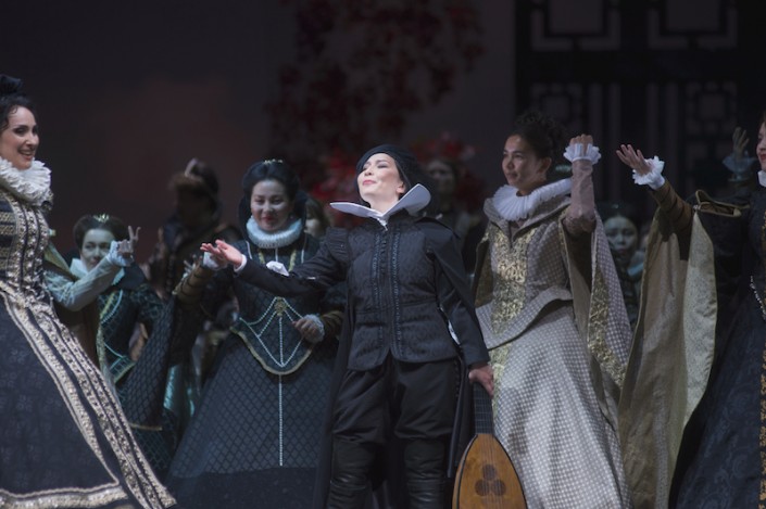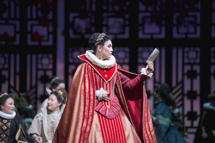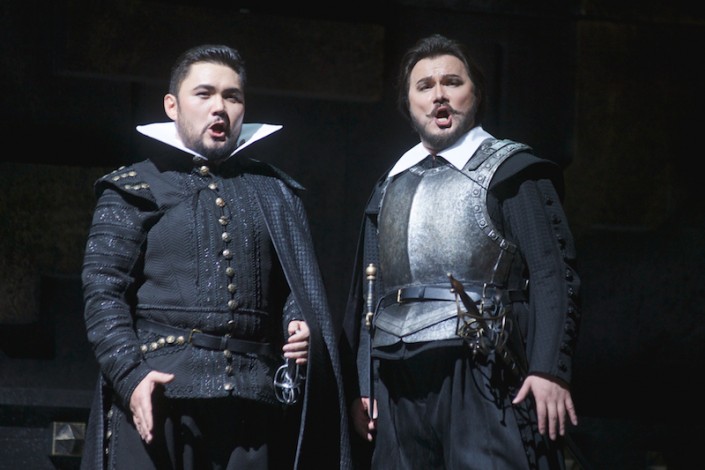 Говорить о вокальных лидерах в "Доне Карлосе" можно долго. Уверенное звуковедение и хорошая подача текста ведущих артистов заслуживают отдельных аплодисментов. В сложнейшей партии Елизаветы Валуа на сцене блистала Жаннат Бактай. Сопрано вызвала большую симпатию у зала. Певица демонстрировала музыкальную выразительность, яркие низы и верха, богатые филировки и пиано. Видно было, что все движения артистки отточены, по-королевски величавы, но в то же время мягки и женственны.