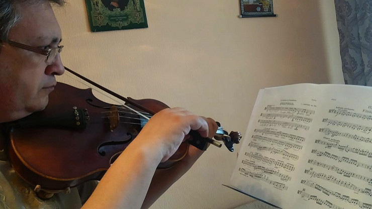 "Из-за вынужденного карантина наша жизнь не остановилась, мы продолжаем дома учить партии из текущего репертуара и не теряем надежды в мае сыграть Нурлану альтовое соло из "Коппелии", а Айман - гобойное соло из "Лебединого озера". В этих двух балетах очень важны сольные партии альта и гобоя. Учим новые произведения, тем более у нас на май был запланирован квартетный концерт, и мы все очень надеемся, что он состоится в стенах нашего театра. Параллельно занимаемся со своими детьми, которые тоже скрипачи, то есть готовим будущую смену для нашего оркестра"