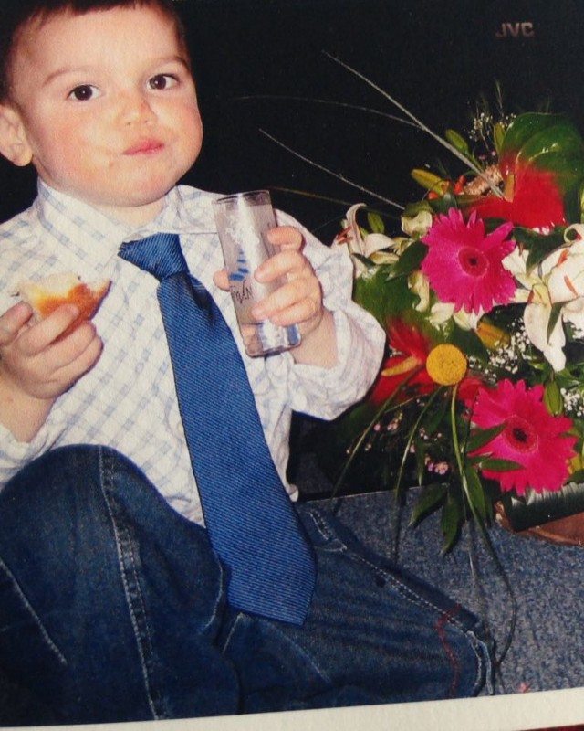 На кадрах Александр в черной футболке и брюках обнимает свою маму. Также Ирина поделилась архивным фото, на котором ее наследник запечатлен еще совсем ребенком. Он ест булочку, держа в руках стакан.