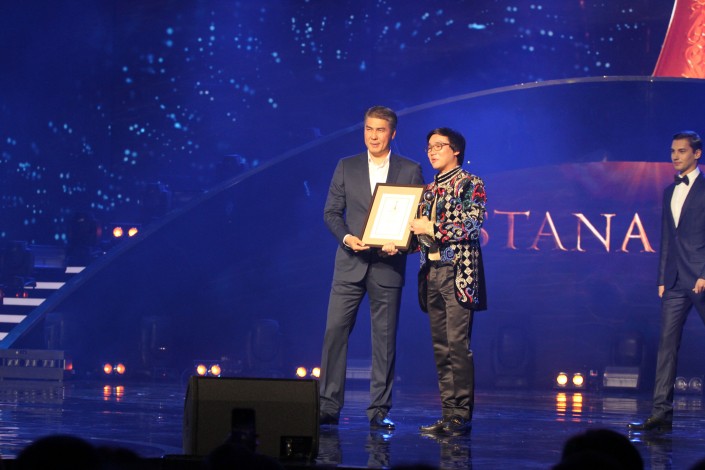 Вместо певца почетную статуэтку принял его саунд-продюсер Ерлан Бекчурин.