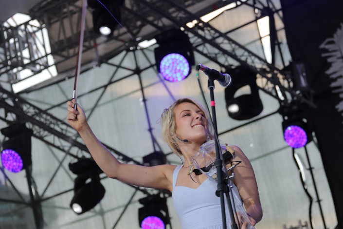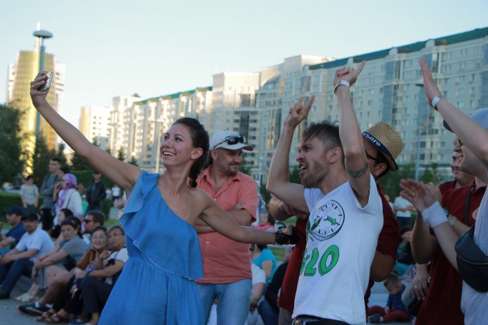 20.45 Солистка из Башкортостана Катя Ямщикова после своего выступления на The Spirit of Astana присоединилась к зрителям, чтобы вместе послушать других участников фестиваля этно-музыки.