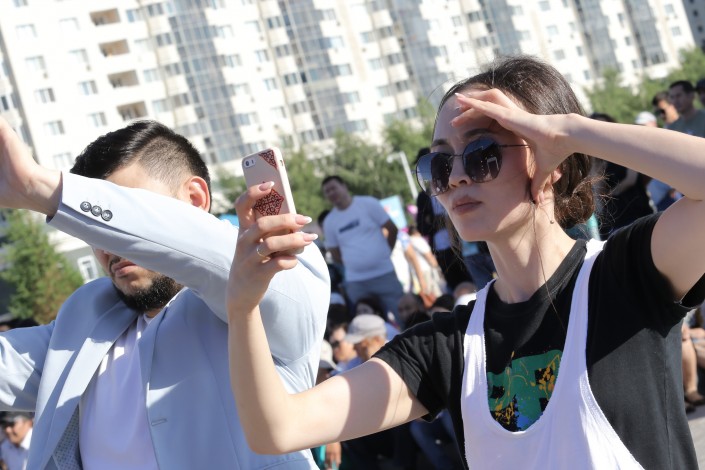 19.30 Солнце клонится к закату и на площадь у монумента "Байтерек" приходит долгожданная прохлада. Зрителей собирается все больше, впереди их ждет множество потрясающих выступлений!
