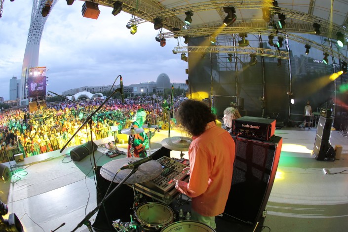 19.05 Следующим на сцену The Spirit of Astanа выходит коллектив из Тувы Khoomei Beat - яркий представитель нового поколения тувинских музыкантов. Питаясь корнями тувинского фолка, музыканты тонко смешали экспрессию рока с легкой беззаботностью джаза и поп-музыки.