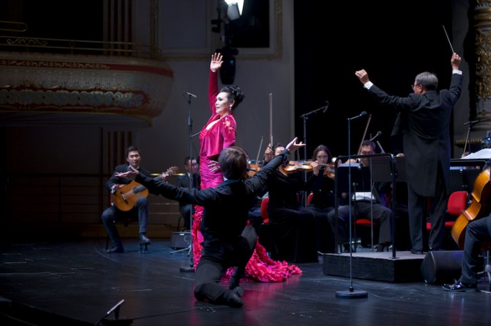 За дирижерским пультом блистали маэстро Франческо Иван Чампа из Италии и хорошо известный и любимый казахстанской публикой Абзал Мухитдинов. Симфонический оркестр исполнил сольно интермедию из сарсуэлы "Свадьба Луиса Алонсо" Х. Хименеса и галоп из оперетты "Москва, Черемушки" Шостаковича. Музыканты оркестра продемонстрировали высочайший уровень исполнительского мастерства.