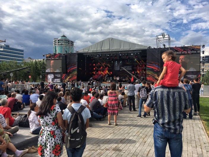 Международный проект The Spirit of Tengri, рожденный на казахстанской земле и уже имеющий статус культурного бренда национального масштаба, впервые представлен в столице. Сцена фестиваля расположена таким образом, что происходящее на ней можно увидеть с любой точки площади. При этом по бокам от сцены установлены большие LED-экраны, так что зрители не упустят ни одного элемента шоу.