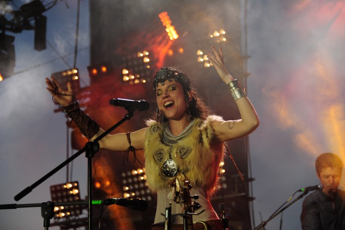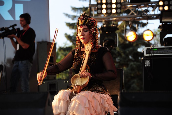 Затем на сцену вышла исполнительница Тилле Торок в составе группы Holdviola. Венгры на фестивале современной музыки играли во второй раз и немного другим составом. К их коллективу присоединился виолончелист. Особенно запоминающимся в их выступление стало то, что они переделали казахские песни на венгерский лад. В основе творчества Holdviola лежит богатая и самобытная музыкальная культура мадьяр. Музыканты сумели привнести в свое выступление лирическую и нежную атмосферу.