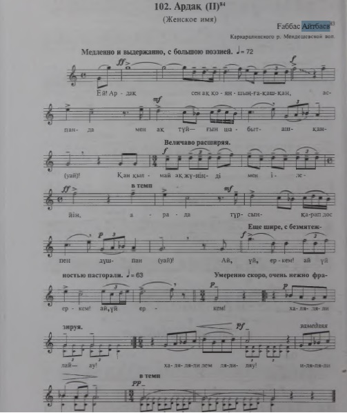 "Ноталарды қағазға түсіру үшін біз Ғаббас екеуміз ауылдан шет жерге шығып жайғастық. Мен оны бетегелі, тербеліп жатқан көлдің маңында тыңдадым. Ол қолына домбыраны алып "Ардақ" пен "Қанапия" әндерін орындады. Мен оны жатып тыңдадым. Сол уақытта мен аспанда қалықтап ұшып жүрген ірі он екі қыранды санадым. Мінекей, осындай қоршаған ортада оның әні ерекше естілді. Мен бұл әнді бұрында білетінмін, ол менің бірінші кітабыма енген. Бірақ Ғаббас орындауында бұл ән өзгеше шырқалды. Меніңше, оның шырқауы жеңіл, теңіз толқыны тәрізді, оған домбыраның жоғарғы дыбыс беретін ішегін қосыңыз. Ғаббастың орындауындағы "Ардақ" сайын даланың тыныштығын, ай жарығының жайлылығын білдіреді", - дейді Затаевич.