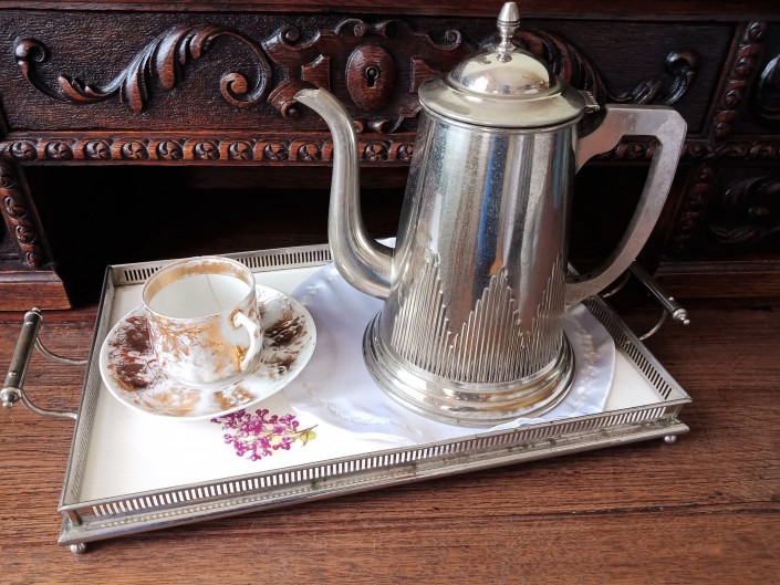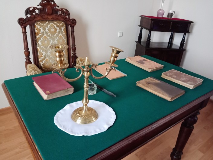 Төменде оның бірнеше жеке кабинеттері, кітапхана бар.