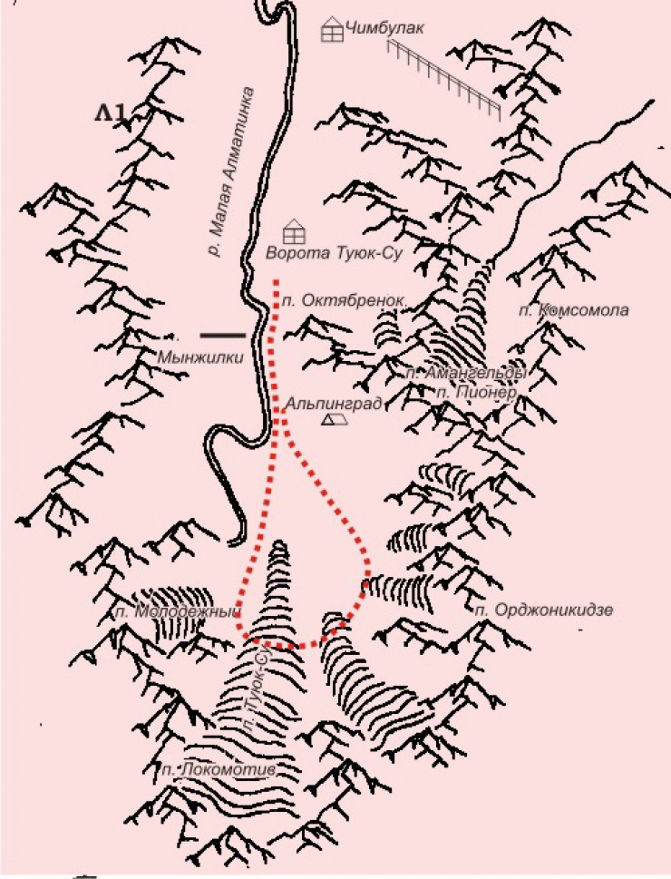 Урочище Туюк-Су названо так по имени ледника, из которого и вытекает Малая Алматинка. Тут же на высоте 2 450 метров раскинулся одноименный Альплагерь.