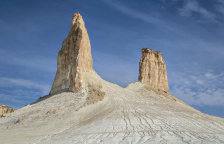 Еще одно уникальное место – это урочище Босжира, которое представляет собой гряду скальных образований разных размеров и форм. Тут же находится одноименная гора, высота которой в пиковой точке достигает 287 метров. Перед въездом в урочище можно заметить своеобразные "клыки" – останцы, которые стали визитной карточкой этих мест.