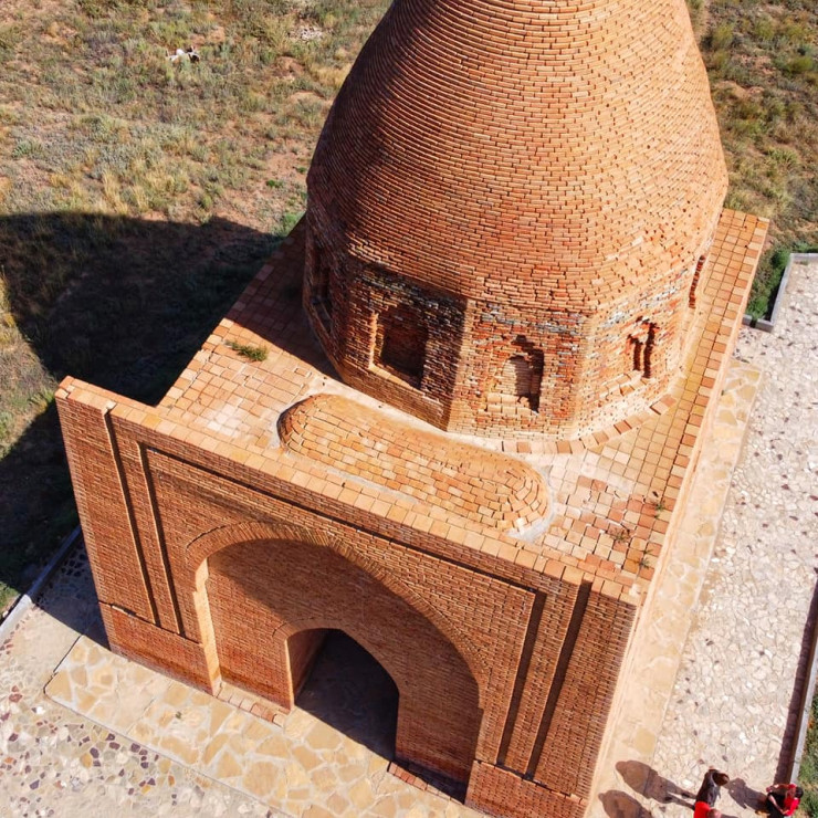 Вначале мы посетили мавзолей Абат-Байтак, который, согласно легендам, был воздвигнут над могилой батыра Абата, сына философа-утописта Асана Кайгы (ученые, правда, не особо разделяют эту теорию, говоря о том, что под сводами мавзолея, скорее всего, покоится кто-то из чингизидов). Весьма интересен и древний некрополь, располагающийся по соседству.