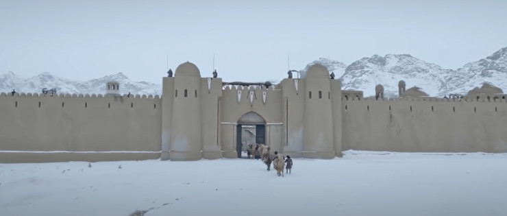 Эти декорации были созданы специально для съемок фильма "Кочевник" на берегу Или (недалеко от города Конаева). Сейчас это место стало центром притяжения туристов.