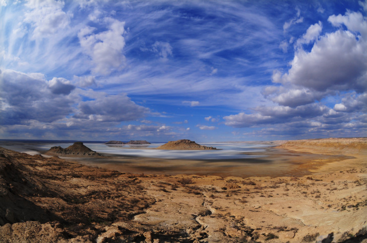 О красотах плато Устюрт написано и снято очень много. Теперь на уникальные места можно взглянуть и с высоты птичьего полета. Россиянин Юрий Песцов снял виртуальный тур по впадине Карын-Жарык.