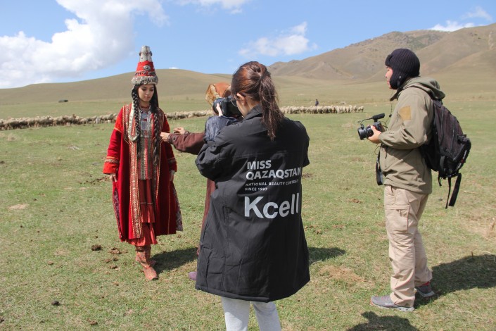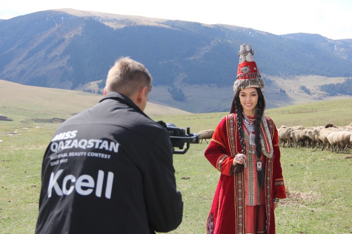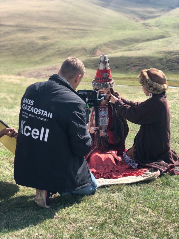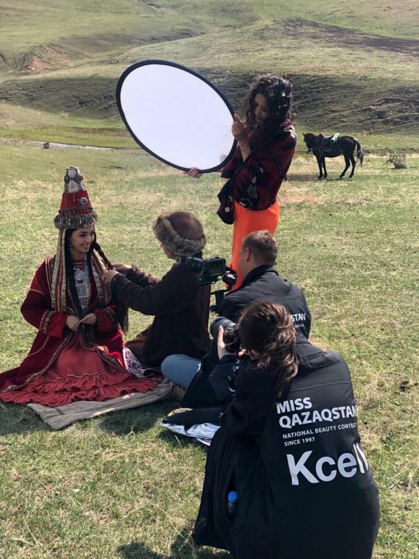Ранее Tengri Travel рассказывал, как проходил первый день съемок в живописных горах близ Алматы - на Бутаковке. "Мисс Казахстан - 2019" Мадина Батык в роскошном наряде весом почти 30 килограммов снималась на лошади.