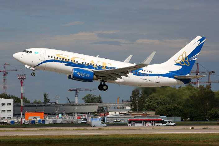 Boeing 737-700 NG - пассажирский авиалайнер Boeing 737-700 является представителем серии Next Generation и был введен в эксплуатацию в 1997 году. Это узкофюзеляжный самолет с двумя двигателями, он отличается от базовой модели Вoeing 737 новой конструкцией крыла и хвостового оперения, цифровым кокпитом, более совершенными двигателями и комфортными пассажирскими креслами. Самолет может вместить до 149 пассажиров и выполнять рейсы протяженностью до семи часов полета. Данный тип самолета находится в авиапарке авиаперевозчика SCAT и осуществляет регулярные внутренние рейсы по Казахстану.