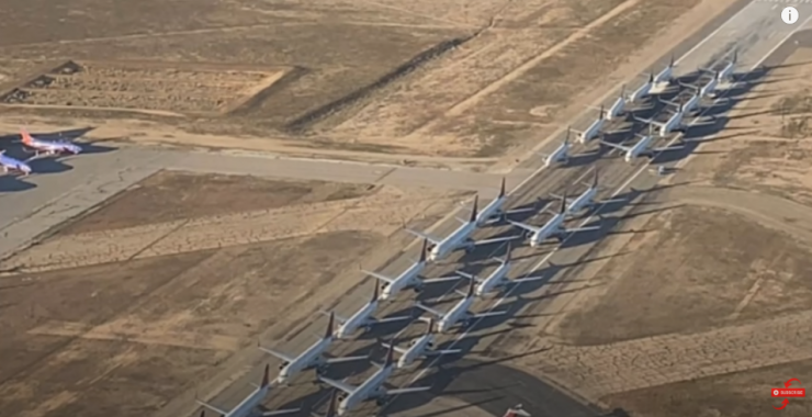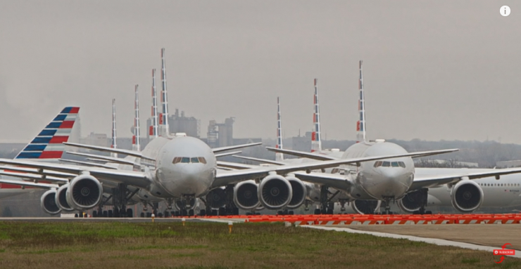 Самолеты в ожидании снятия карантина в одном из аэропортов США, скриншот с видео Youtube.com