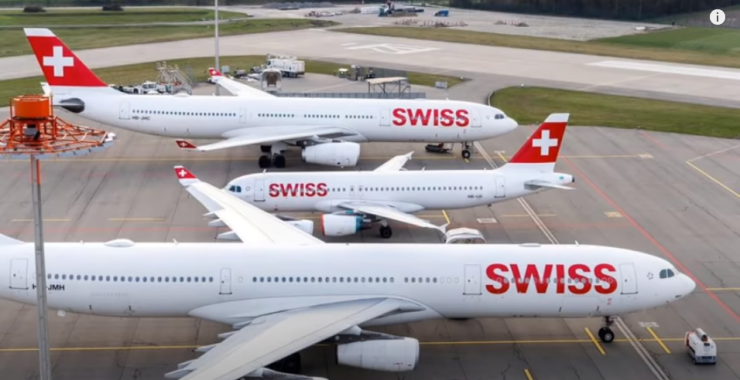 Припаркованные самолеты на взлетной полосе в одном из аэропортов Австрии, скриншот с видео Youtube.com